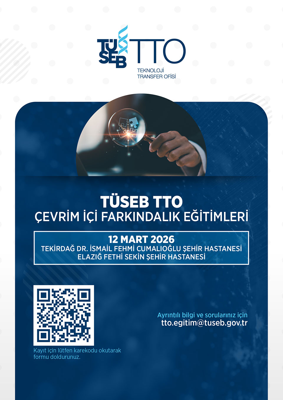 Serinin beşinci eğitimi 12 Mart 2026 Perşembe günü Tekirdağ Dr. İsmail Fehmi Cumalıoğlu Şehir Hastanesi ve Elazığ Fethi Sekin Şehir Hastanesi personeline yönelik olarak, serinin altıncı eğitimi ise 13 Mart 2026 Cuma günü Mersin Şehir Eğitim ve Araştırma Hastanesi ve Kayseri Şehir Hastanesi personeline yönelik olarak çevrim içi ortamda gerçekleştirilecektir.
